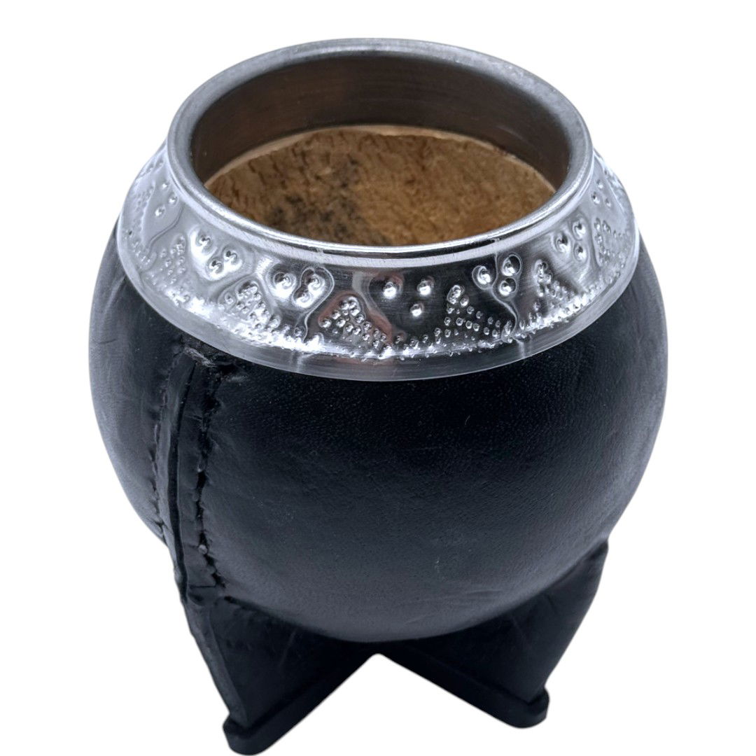 MATEOLI de Calabaza Brasilera, Virola de Acero cincelada a mano, forrado en cuero costura Uruguaya hacia adentro y 4 patas reforzadas para un mejor apoyo.
