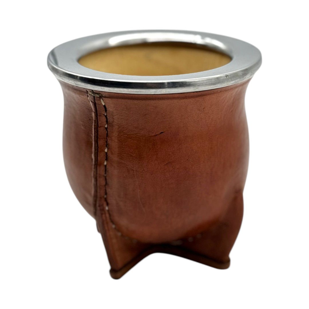 MATEOLI de Calabaza Brasilera, Virola de Acero, forrado en cuero costura Uruguaya hacia adentro y 4 patas reforzadas para un mejor apoyo.