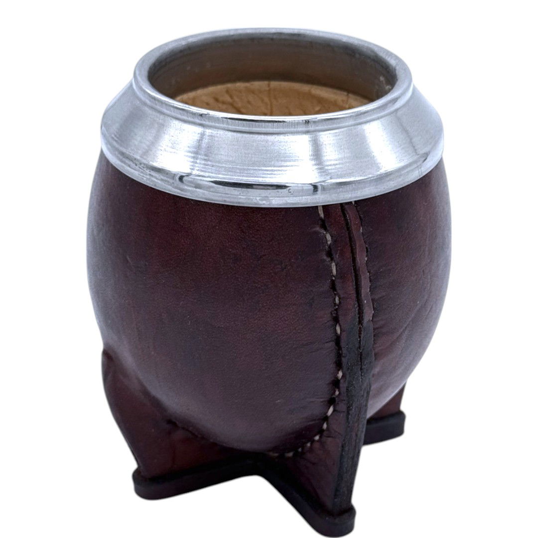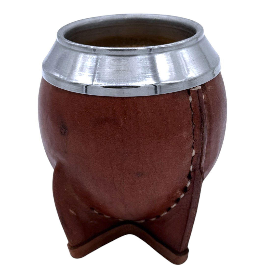 MATEOLI de Calabaza Brasilera, Virola de Acero lisa, forrado en cuero costura Uruguaya hacia adentro y 4 patas reforzadas para un mejor apoyo.