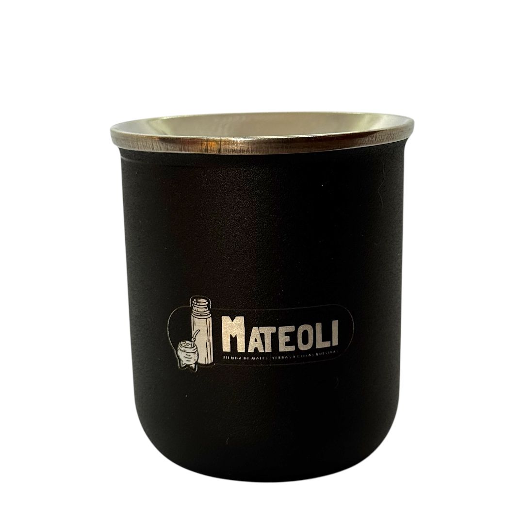 Mate de acero inoxidable térmico doble capa (no trasmiten calor a la mano) pintados en horno con epoxi con un terminado microtexturado de excelente calidad.