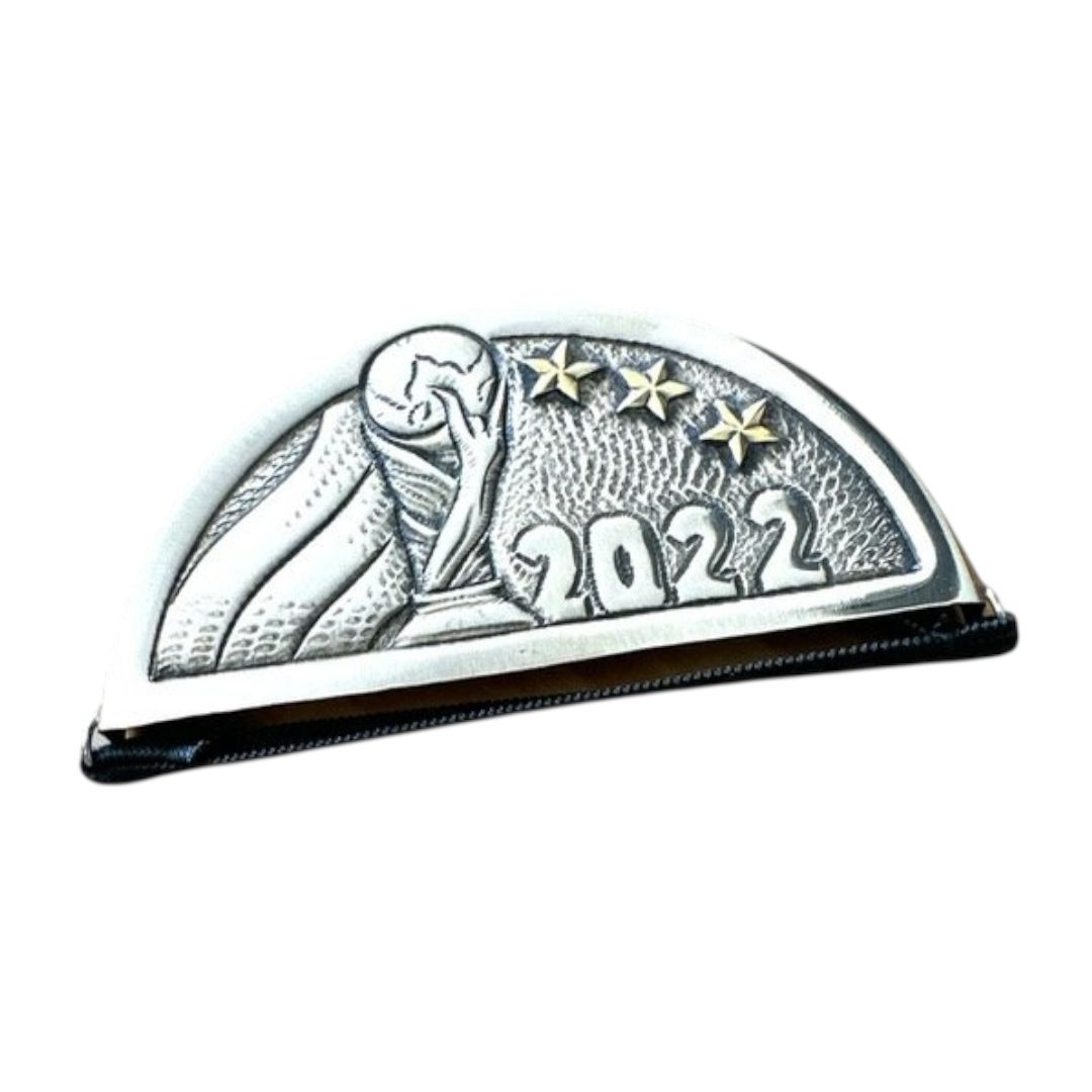 TapaMate Edición Mundial de alpaca cincelada totalmente a mano con apliques en bronce (estrellas), un trabajo único que hace del producto algo espectacular.