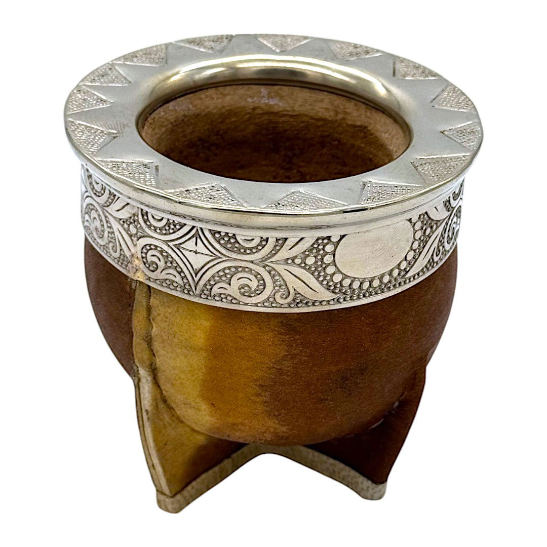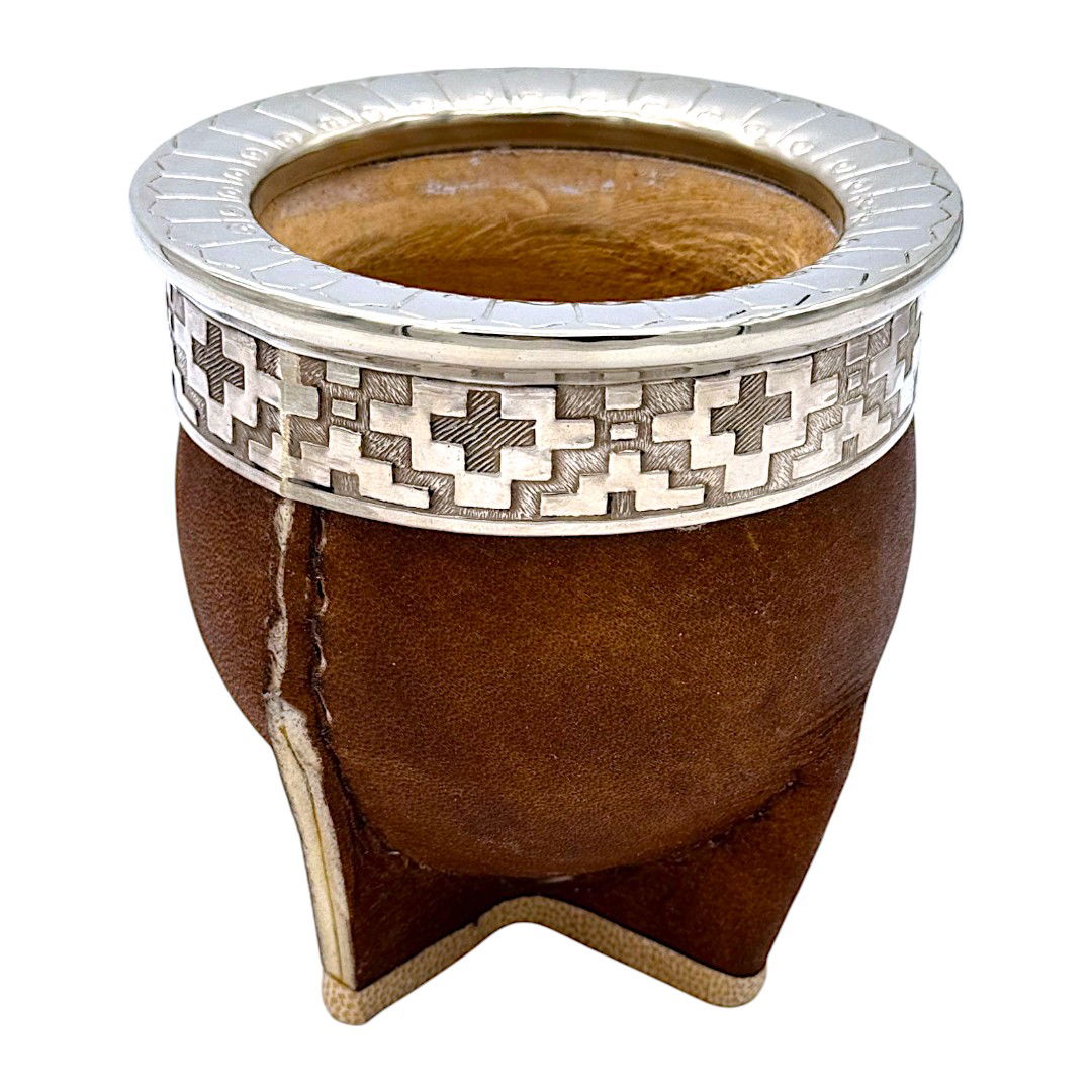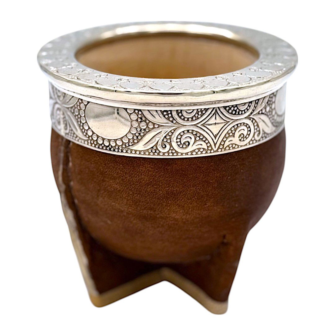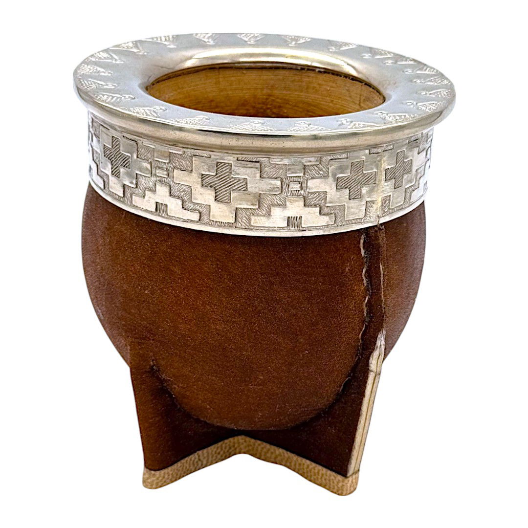 Forrado en cuero crudo con una delicada costura en tiento, este mate combina la rusticidad del material con un acabado elegante. La virola en alpaca cincelada añade un toque de distinción, haciendo de cada cebada un momento especial.