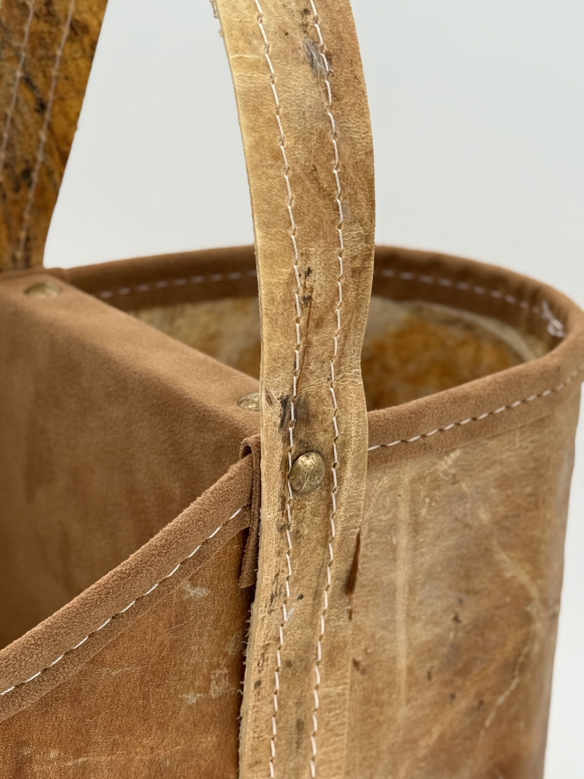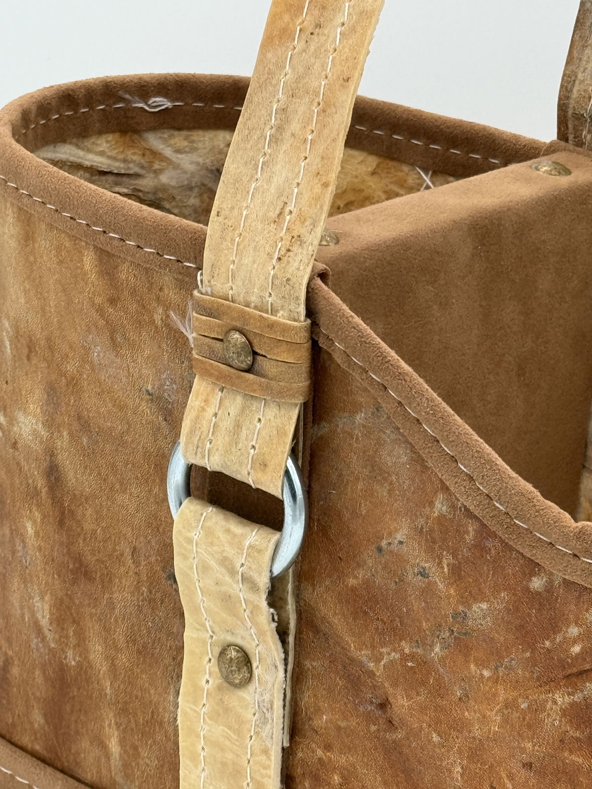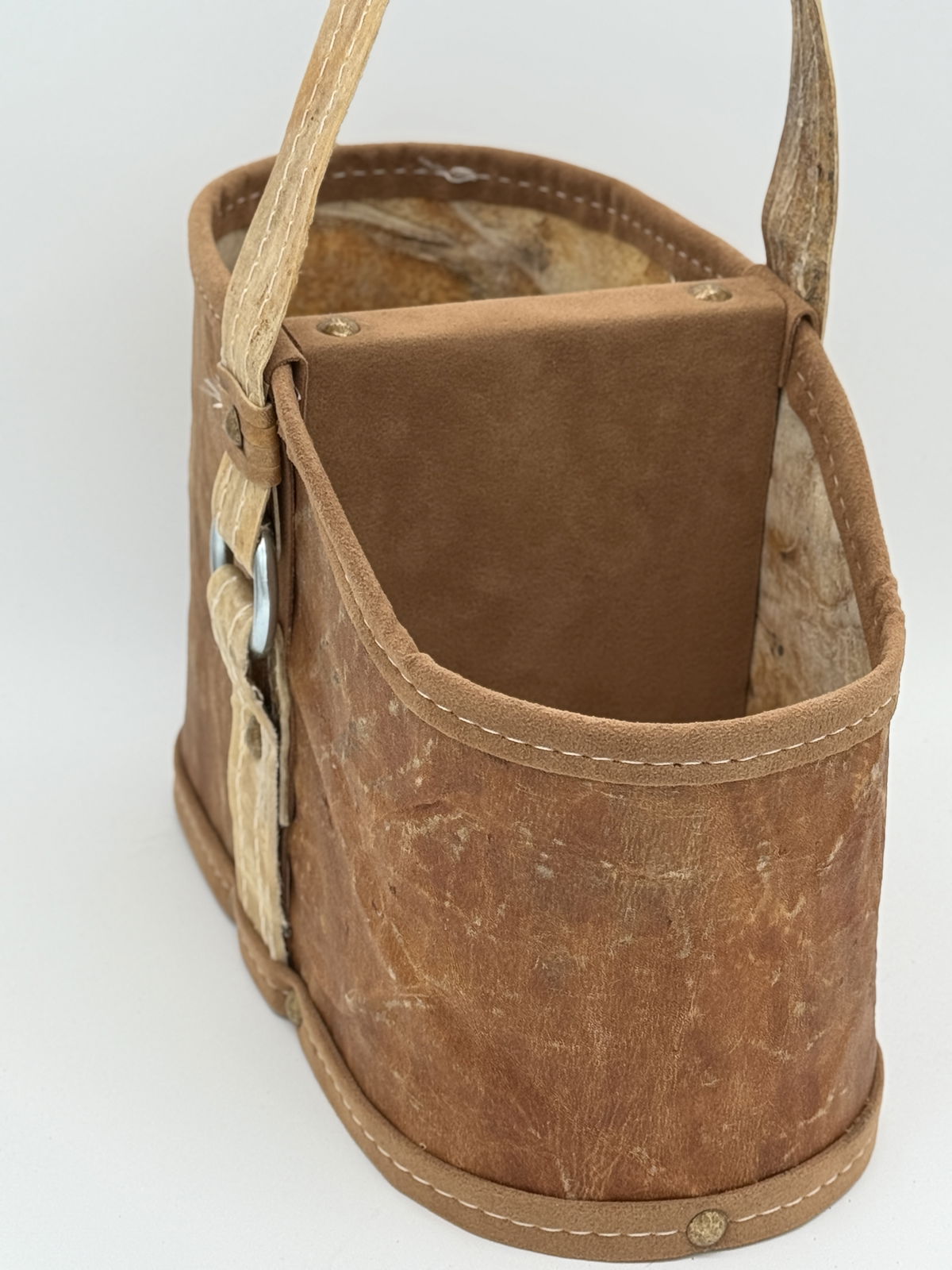 Esta matera de cuero crudo con manija trenzada o Lonja en tiento refleja el equilibrio perfecto entre tradición y calidez.