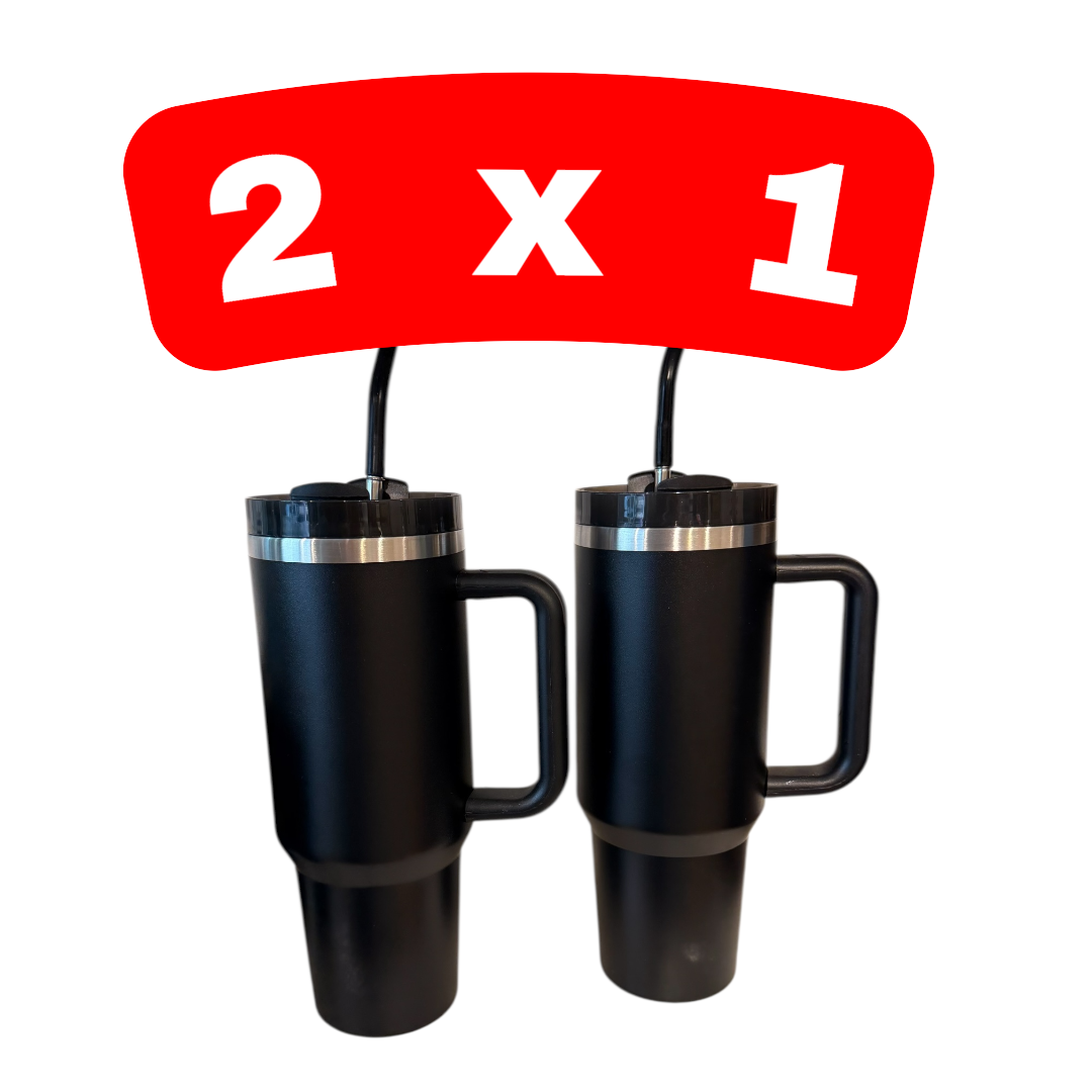 VASO TERMICO DE ACERO INOXIDABLE CON TAPA, SORBETE Y ASA